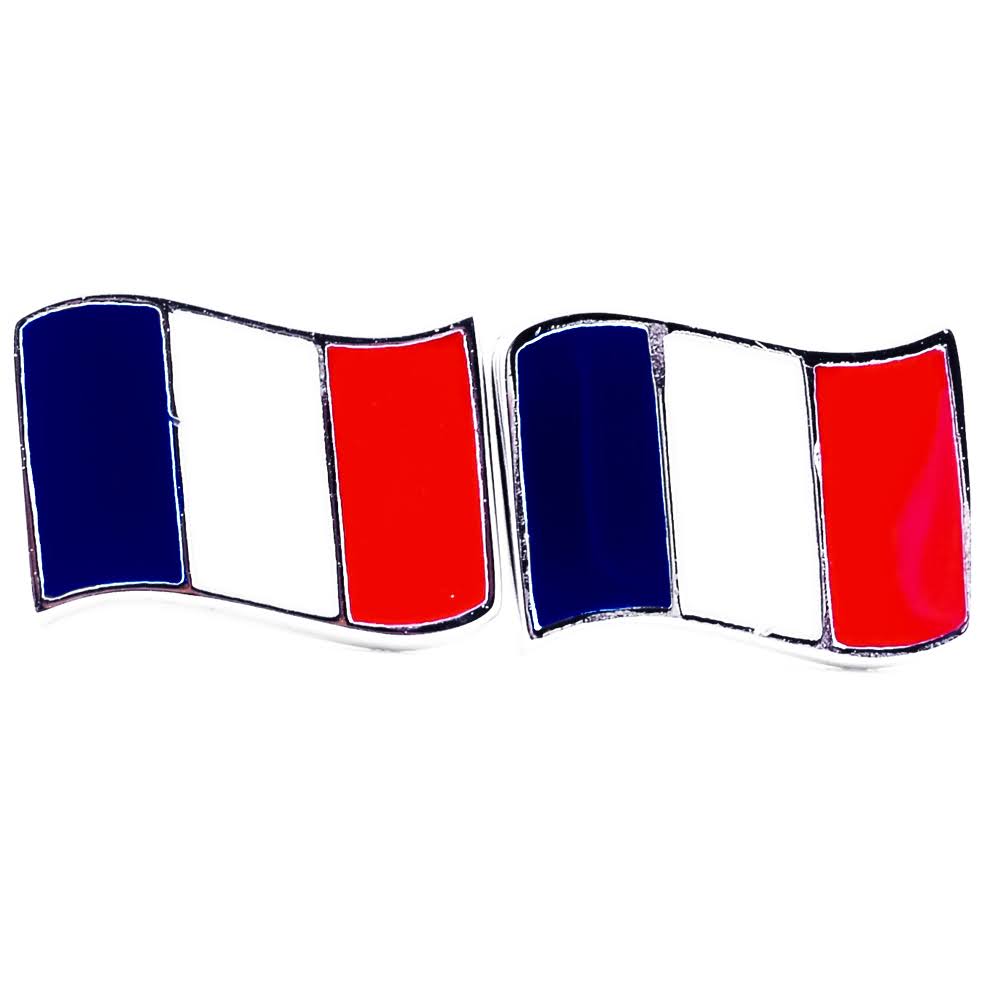 Chic French flag earrings made from rhodinated sterling silver with vibrant hand-painted enamel. Offered in dangle or stud designs—ideal for French elegance and everyday sophistication.
