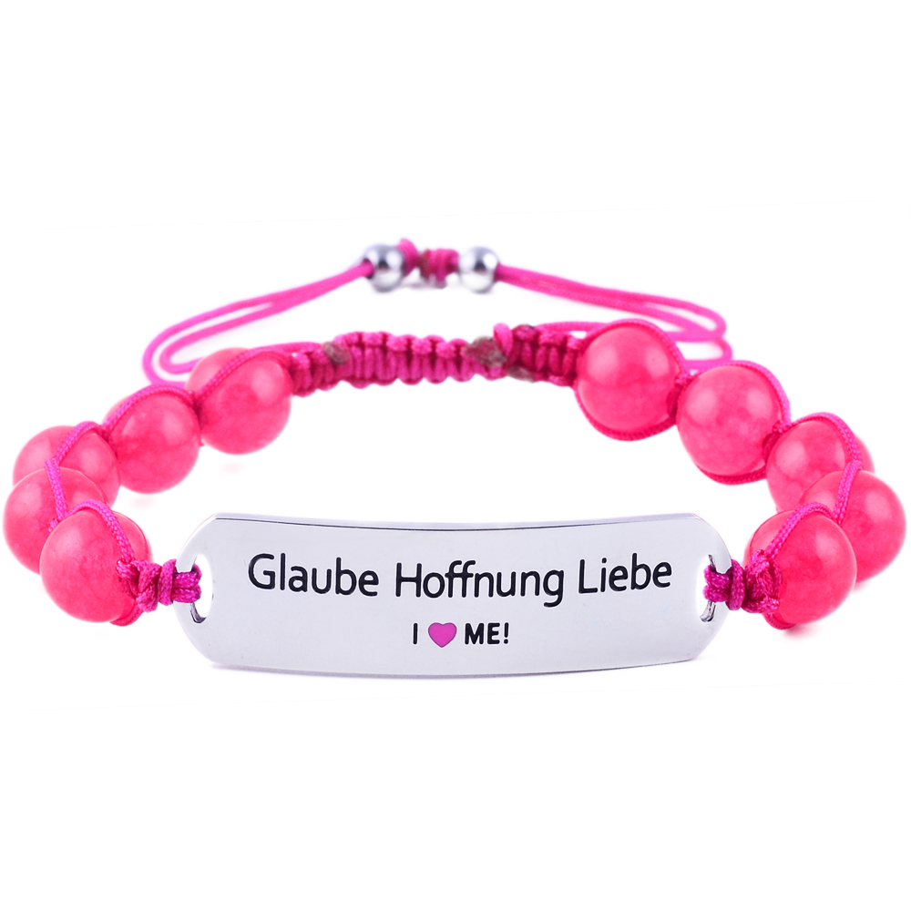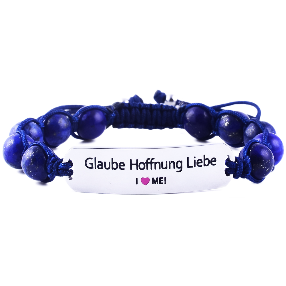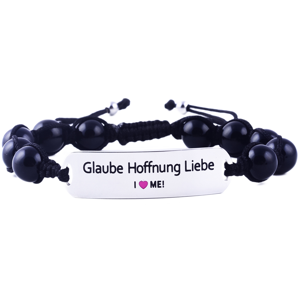 Elegantes “Glaube Hoffnung Liebe” Armband aus graviertem Edelstahl mit natürlichen Edelsteinen. Verstellbar von 15,5 bis 23,5 cm für einen perfekten Sitz, hypoallergen und ideal für den täglichen Gebrauch oder sportliche Aktivitäten – ein zeitloses Accessoire mit Bedeutung.