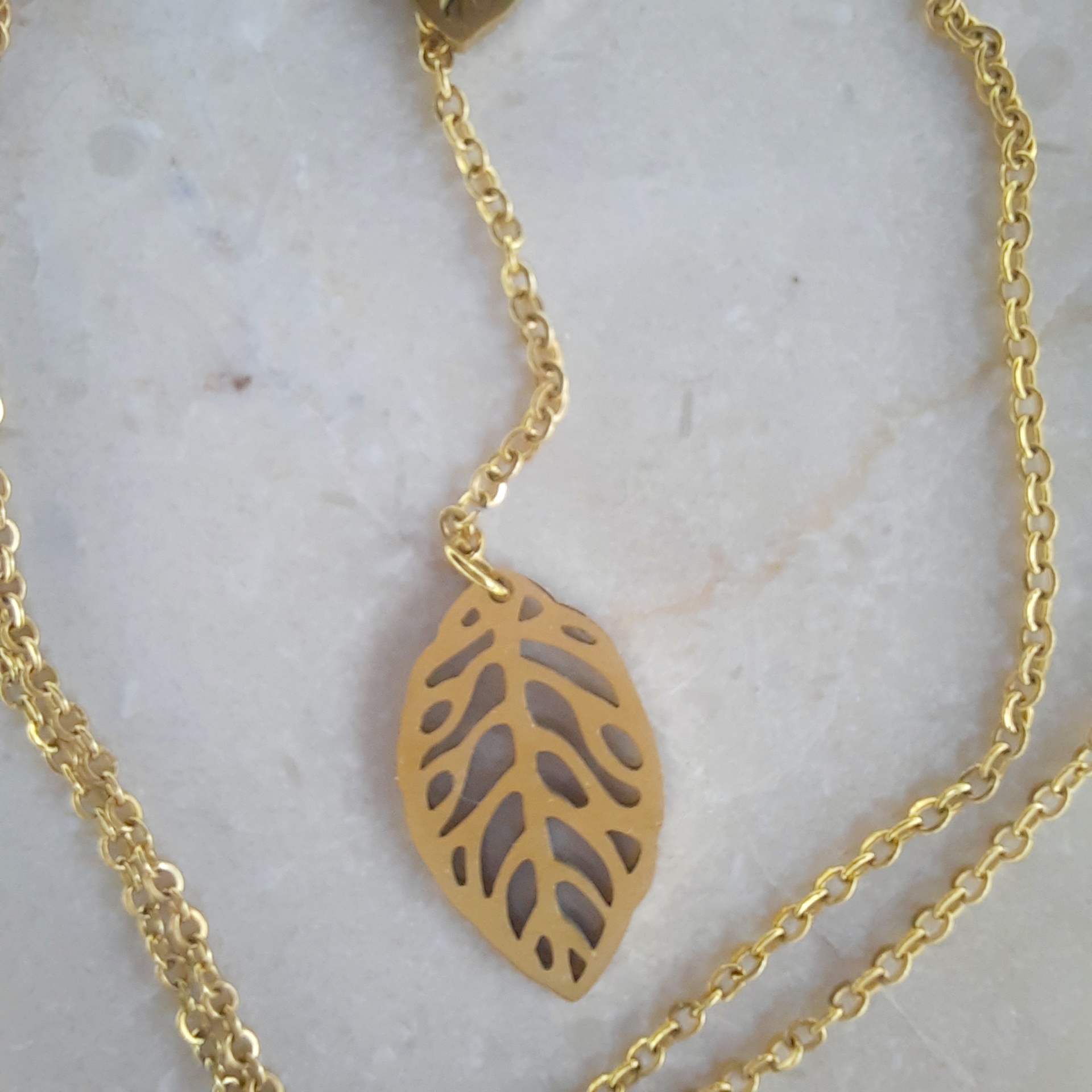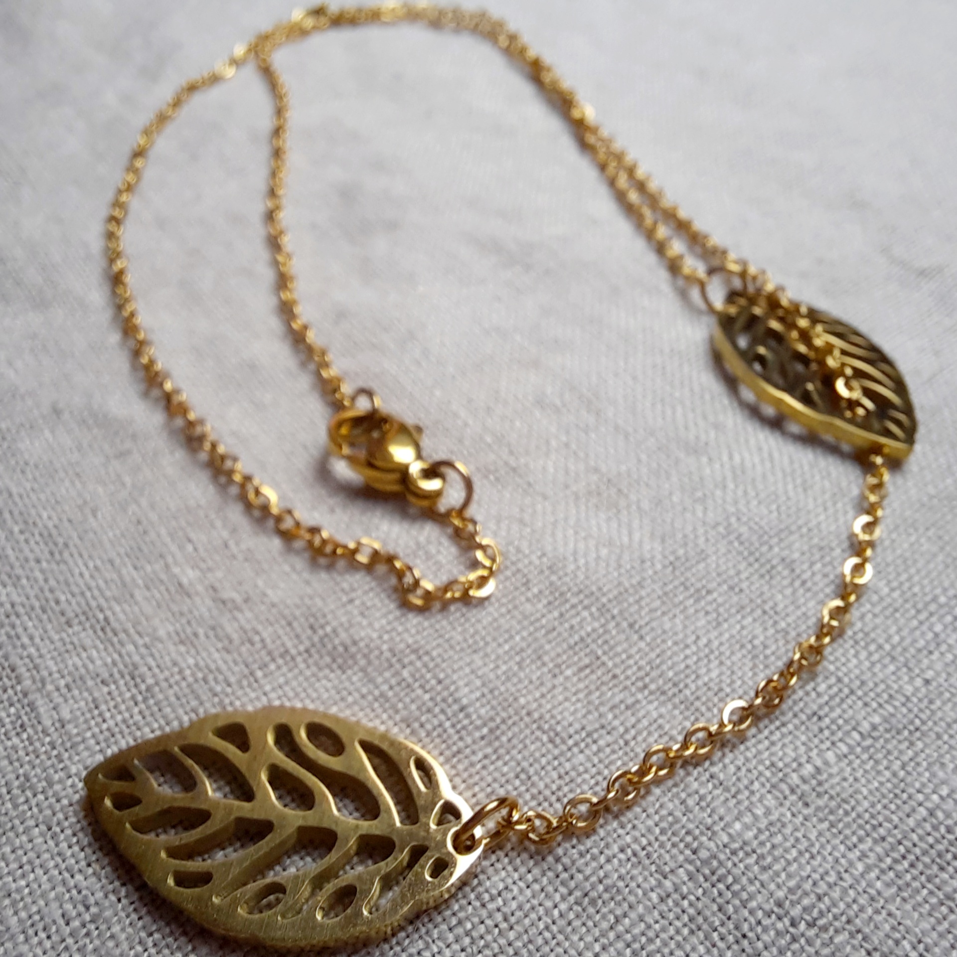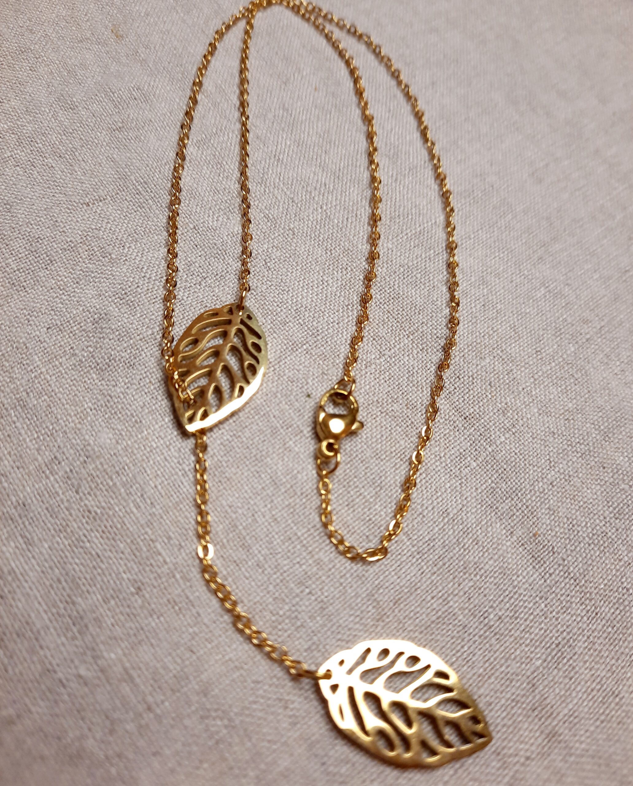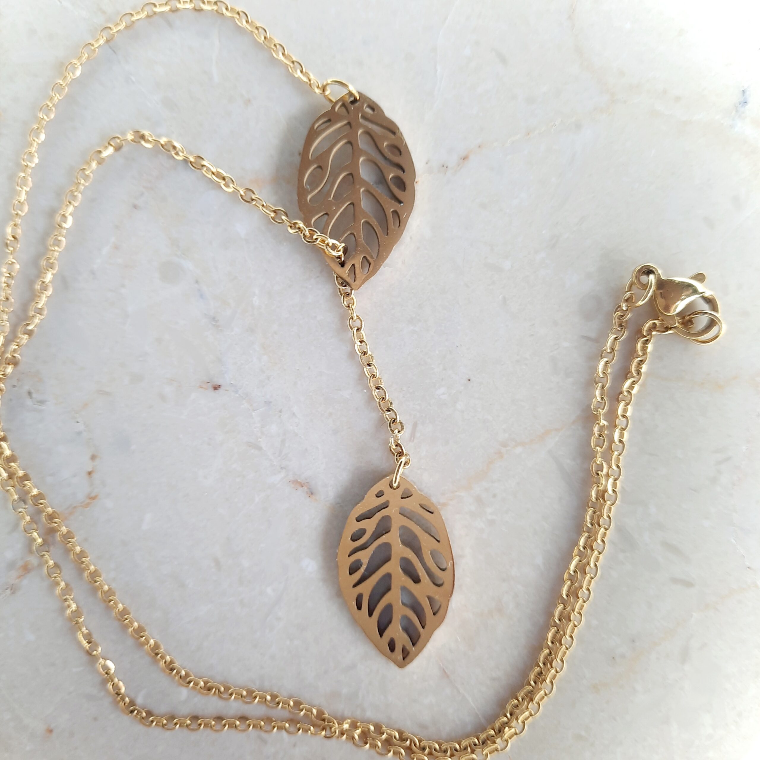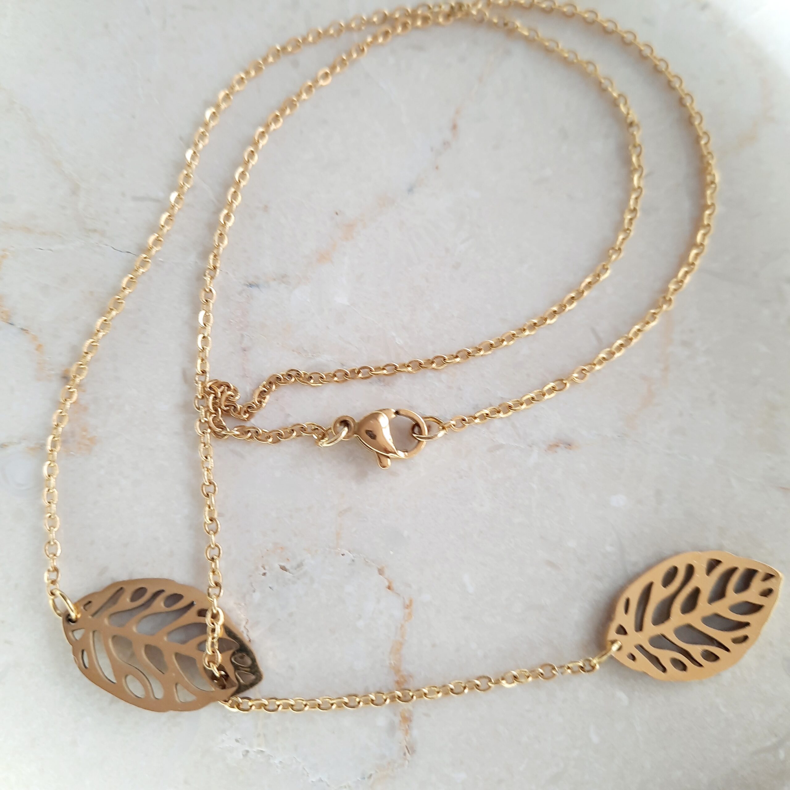 The stainless steel gold-colored necklace drapes beautifully at the collarbone, adding a subtle golden glow to your ensemble-whether you’re dressing up for a special occasion or elevating a simple daytime look. The polished finish and precise detailing of each leaf bring a refined, botanical charm that stands out without overpowering.