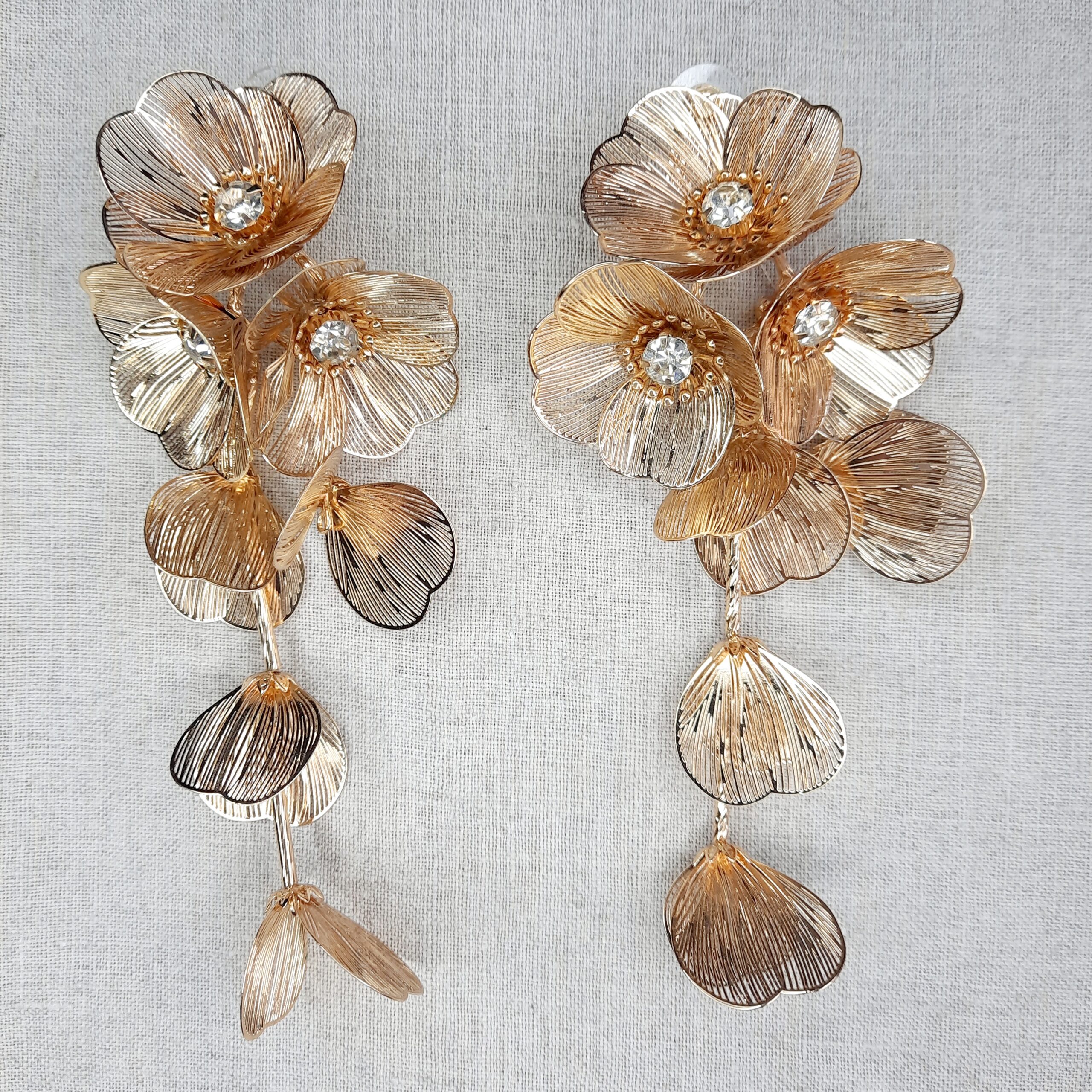 Handcrafted gold-tone petals in a cascading floral design