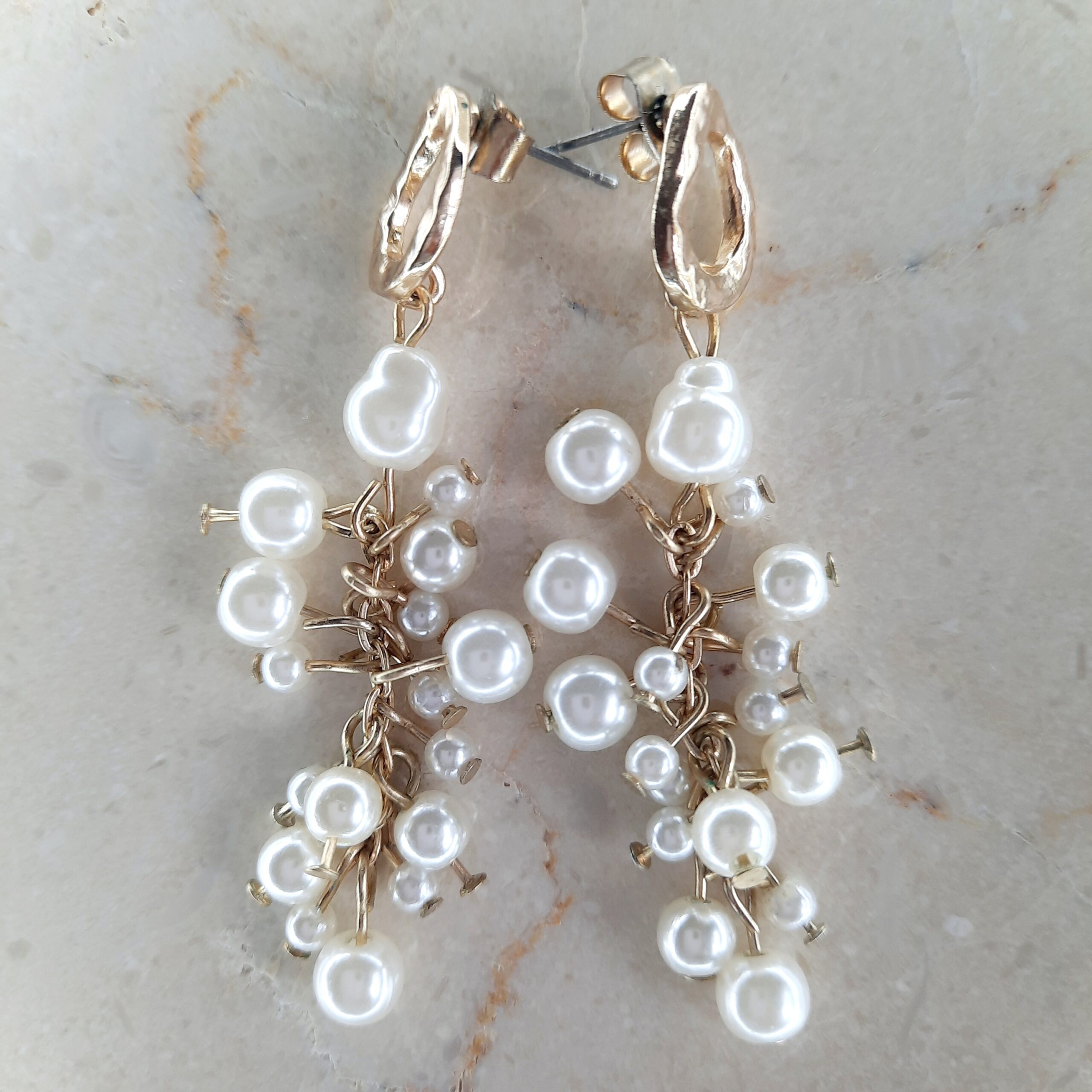 Let your style shimmer with the Pearl Cascade Cluster Earrings-a celebration of playful elegance and contemporary design.